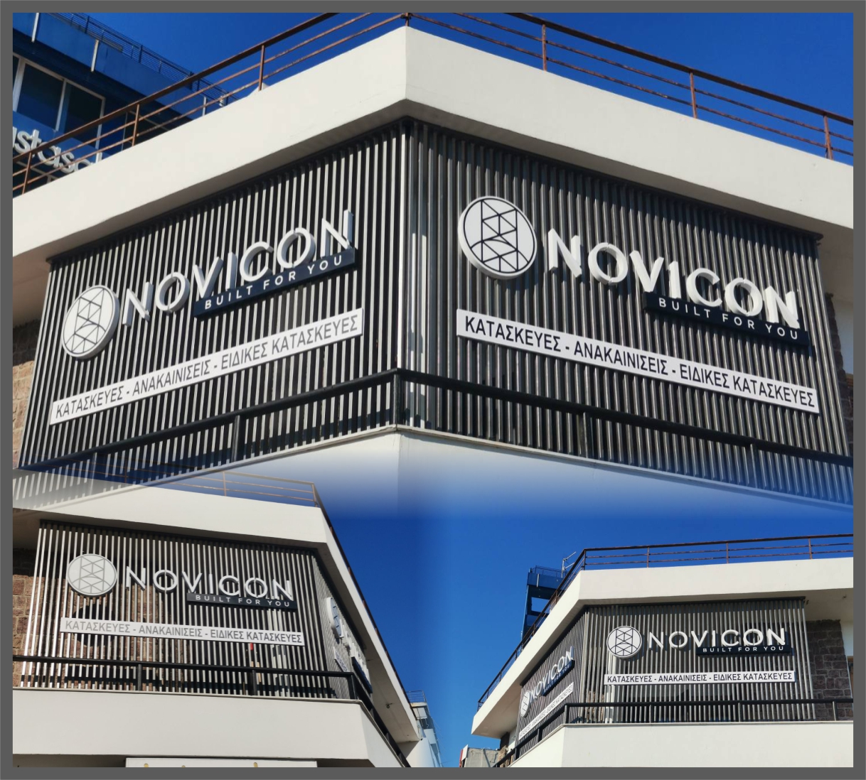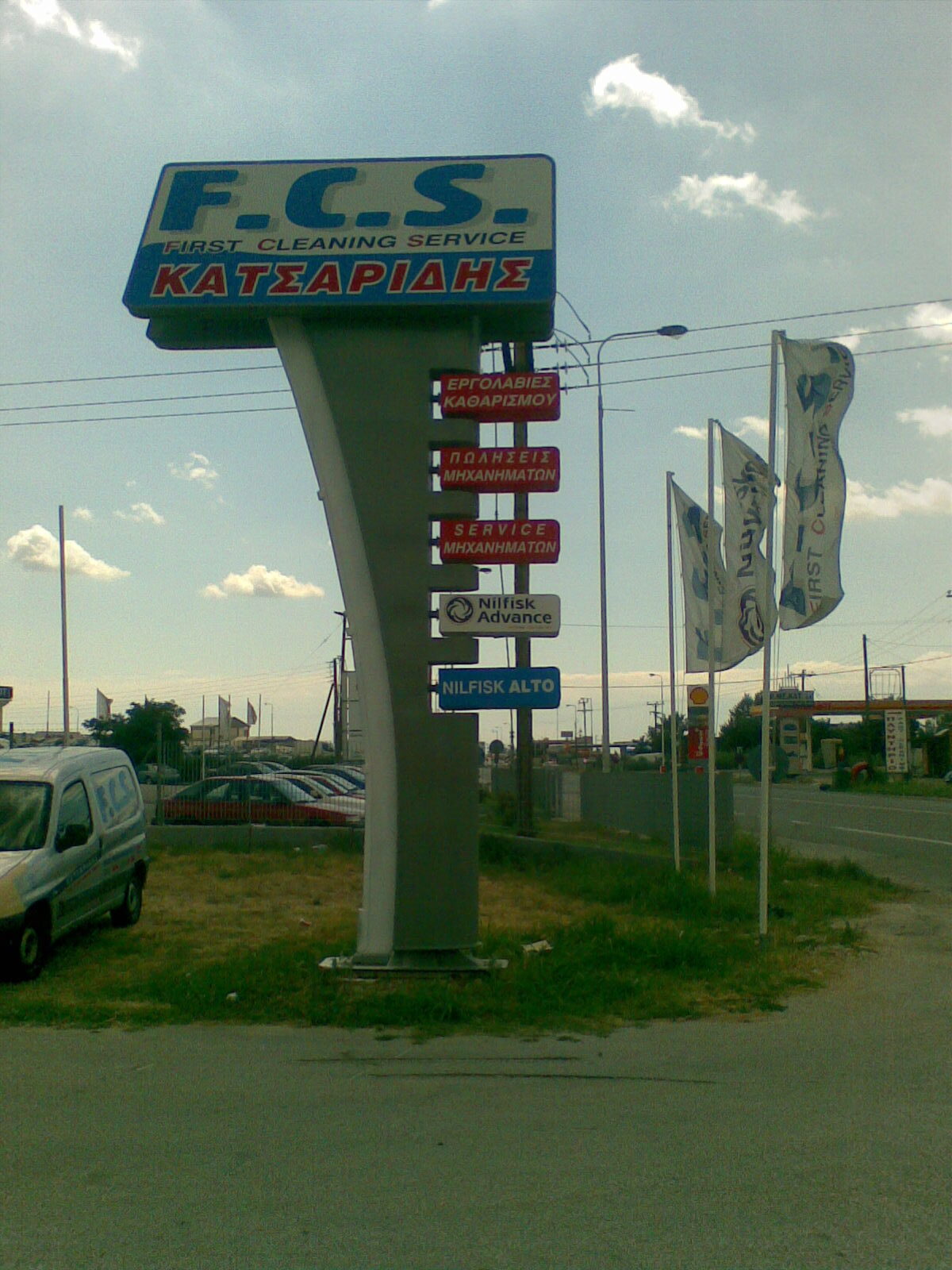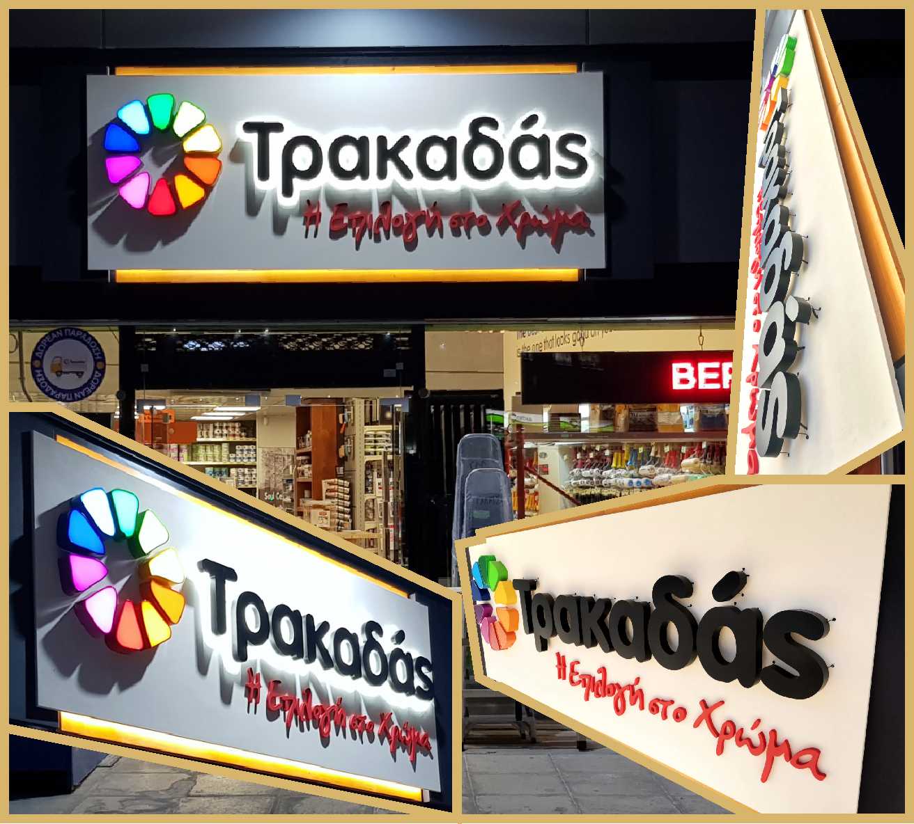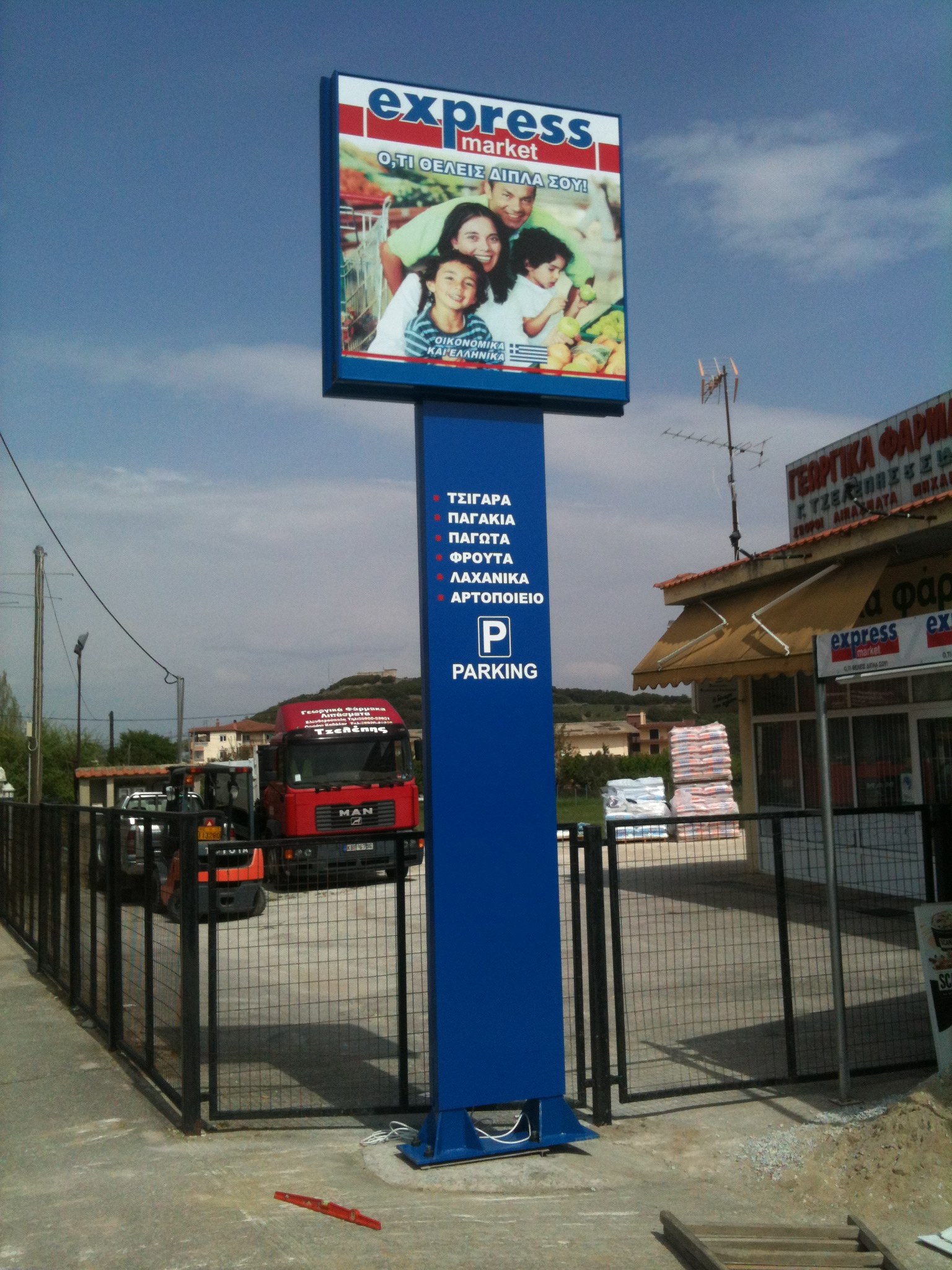 Συνήθως είναι μεταλλικές κατασκευές αυτόφωτες ή ετερόφωτες, σε οποιαδήποτε διάσταση και σχήμα με δυνατότητα συνδυασμού πολλών υλικών όπως ενδεικτικά: προφίλ αλουμινίου, etalbond, plexiglass και βάφονται στο χρώμα της επιλογής σας, ανάλογα με τις ανάγκες προβολής της επιχείρησης σας και του διαθέσιμου χώρου. Για την εφαρμογή του εικαστικού χρησιμοποιούνται πολυμερικά βινύλια κοπτικά ή όπου απαιτείται αυτοκόλλητα ψηφιακής εκτύπωσης. Η κατασκευή μελετάται με ιδιαίτερη προσοχή, όσον αφορά στη στατικότητα, τη στεγανότητα αλλά και την αντοχή των υλικών στο χρόνο και τις καιρικές συνθήκες.