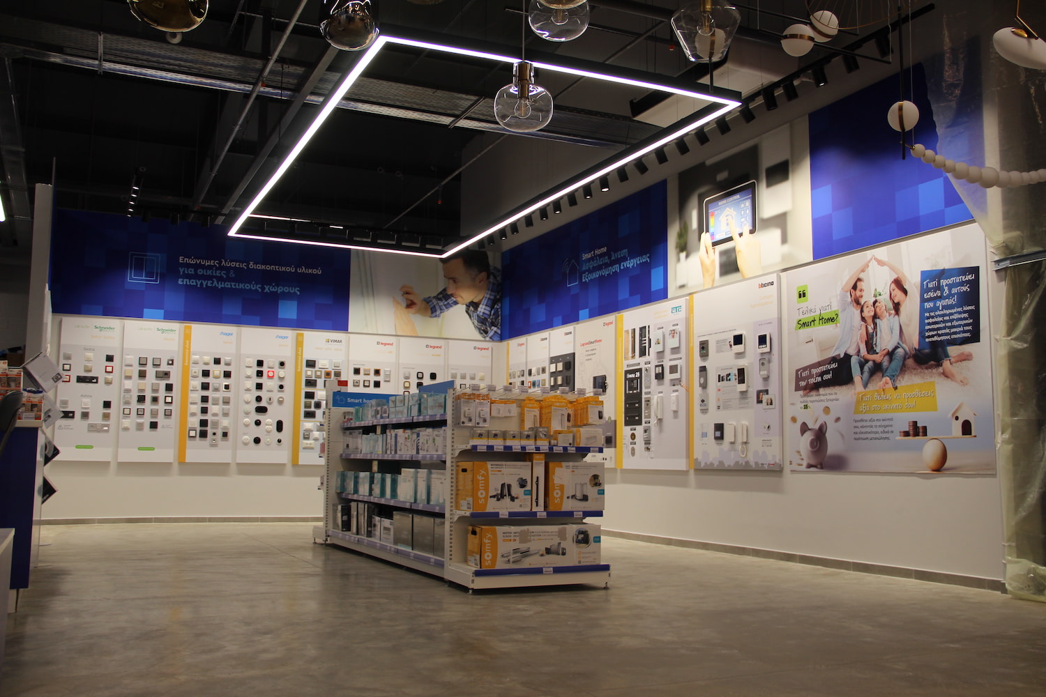 • Εσωτερικά, ειδική κατασκευή και τοποθέτηση πλαισίων αλουμινίου με UV ψηφιακή εκτύπωση σε ύφασμα (textile frames), για άριστο αποτέλεσμα οπτικής επικοινωνίας