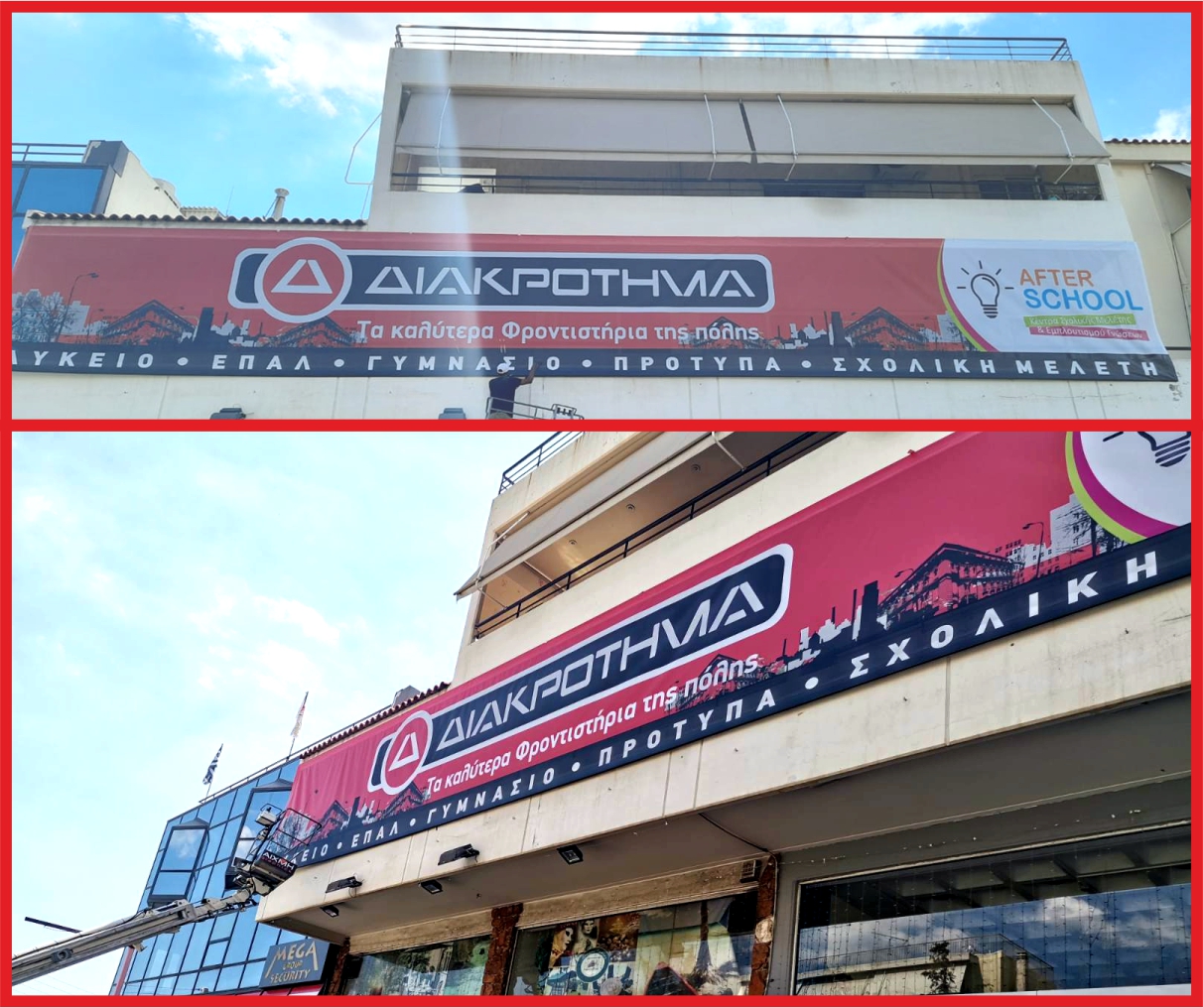 Ο μουσαμάς MESH δίχτυ είναι ιδανικό υλικό για κάλυψη κτηρίων χωρίς να «κρύψουμε» το φως. Ο διάτρητος μουσαμάς (δίχτυ MESH) έχει τη δυνατότητα εξωτερικής εκτύπωσης με γραφικό της επιλογής σας, ενώ εσωτερικά επιτρέπει την ορατότητα κανονικά. Το γεγονός ότι έχει διάτρηση, επιτρέπει τα φορτία του ανέμου να περάσουν μέσα από τις μικροσκοπικές οπές, με αποτέλεσμα να μειώνονται τα φορτία που ασκούνται στο σύνολο της κατασκευής. Συνεπώς αποφεύγεται ο κίνδυνος να ξηλωθεί η κατασκευή από την πίεση του αέρα.